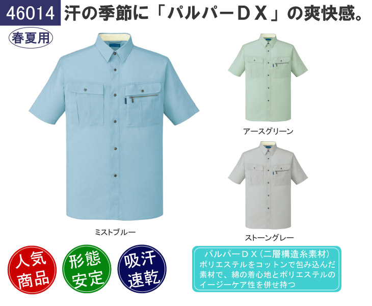 46000,半袖シャツ,自重堂,春夏,46014,大きい,形態安定,パルパー,6L,アースグリーン,ストーングレー,ミストブルー,建設,設備,運送,営業