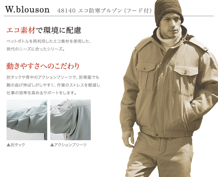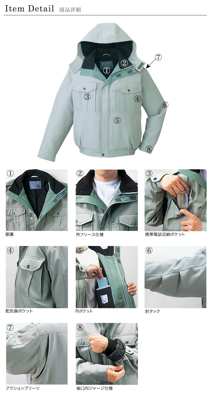 [秋冬用]エコ防寒ブルゾン[フード付・取り外し可能](01-48140)