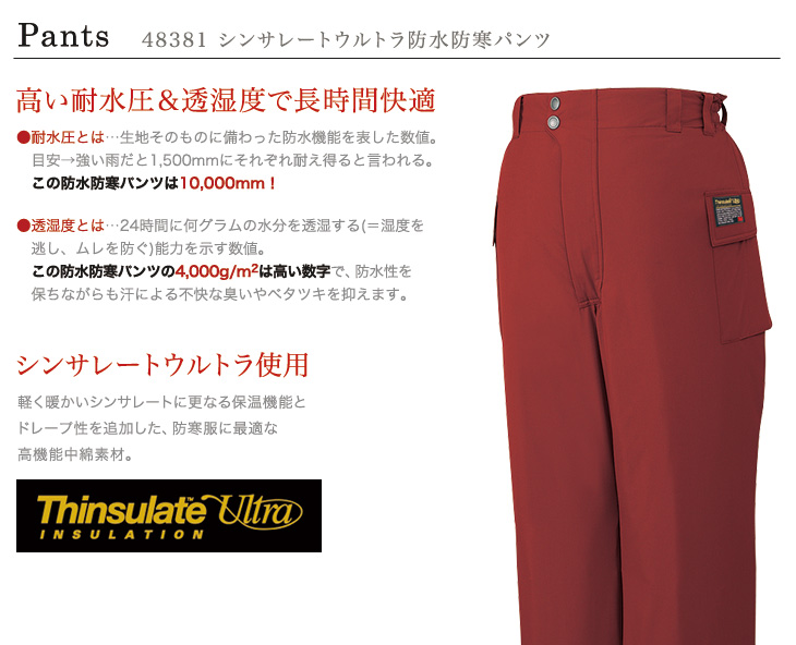 [秋冬用]シンサレートウルトラ防水防寒パンツ(01-48381)