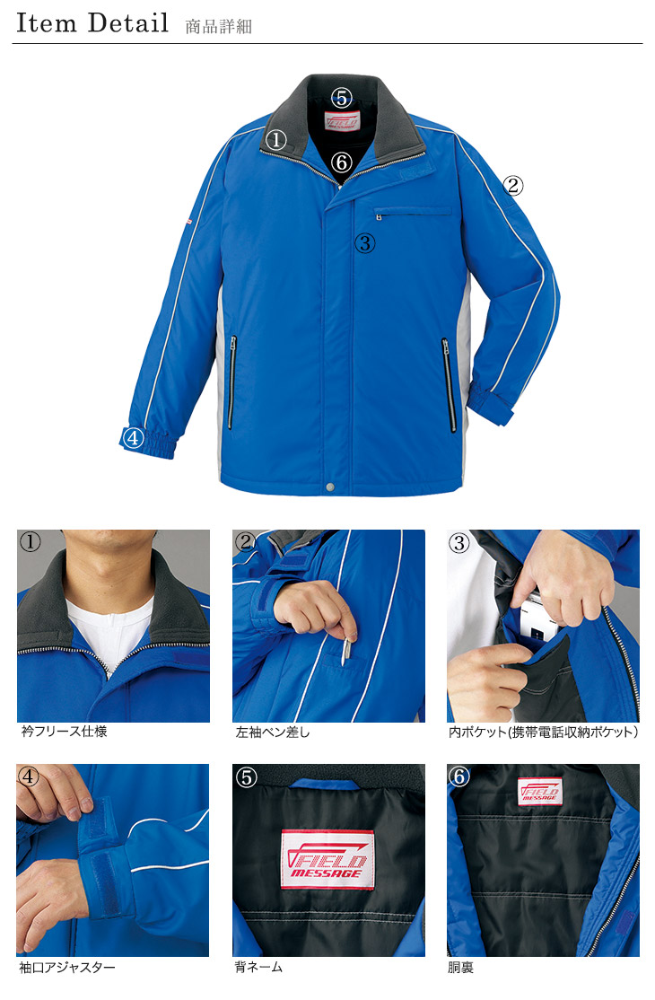自重堂,防寒服,コート,ハーフコート,軽量,軽防寒,撥水加工,ネービー,ロイヤルブルー,ブラック,イベント,運送,倉庫,営業,配達,カジュアル