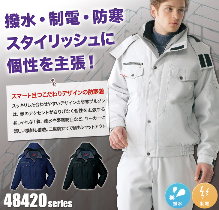自重堂,制電防寒,防寒服,ブルゾン,帯電防止,撥水加工,シックブラック,シルバーグレー,ネービー,建設,土木,電気,設備,運送,倉庫