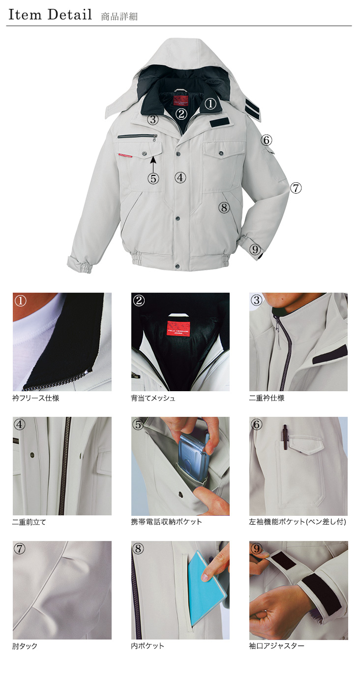 [秋冬用]制電防寒ブルゾン[フード付・取り外し可能](01-48420)