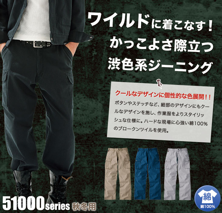 作早2015AW,おしゃれ,大工,51000シリーズ,自重堂,Jawin,ジャウィン,カーゴパンツ,サンドベージュ,インディゴブルー,オレンジ,チャコールグレー,シルバー,ホワイト,JI,秋冬,かっこいい,綿100%