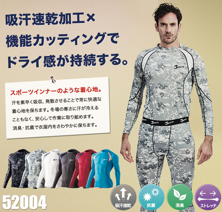 コンプレッション,オールシーズン,秋冬,春夏,オールシーズン,秋冬,自重堂,jawin,コンプレッション,インナー,ブラック,黒,シルバー,カモフラ,迷彩,ホワイト,白,グレー,レッド,赤,ブルー,青,機能性肌着,吸汗速乾,まとめ買い