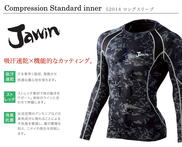 コンプレッション,春夏,オールシーズン,秋冬,自重堂,jawin,コンプレッション,インナー,ブラック,黒,シルバー,カモフラ,迷彩,ホワイト,白,グレー,レッド,赤,ブルー,青,機能性肌着,吸汗速乾,まとめ買い