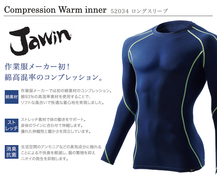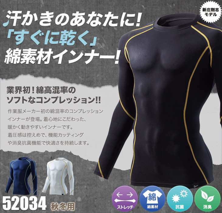 52024シリーズ,おしゃれ,秋冬用,インナー,コンプレッション,自重堂,Jawin,かっこいい,ブラック,ホワイト,ネービー,ネイビー