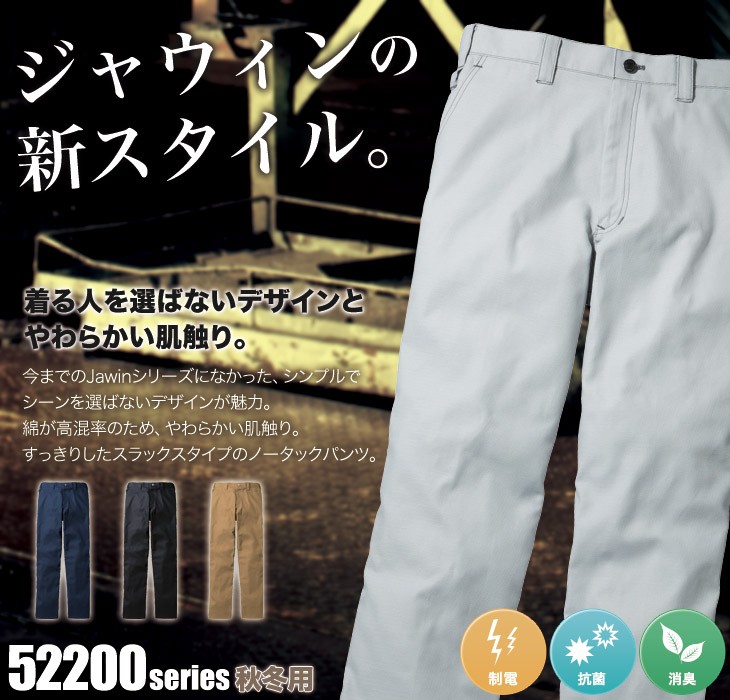 52200シリーズ,おしゃれ,パンツ,ズボン,自重堂,秋冬,Jawin,かっこいい,シルバー,ネービー,ネイビー,ブラック,キャメル