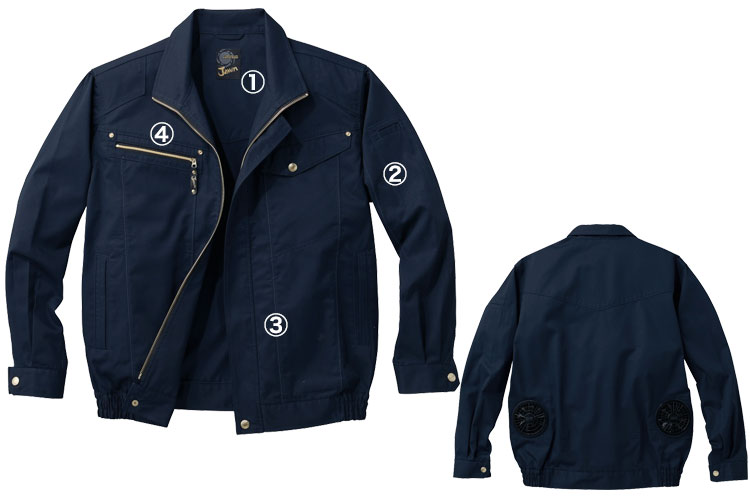 ゴールドのアクセントが魅力の長袖の空調服®。インパクトと特別感があふれる空調服®です。