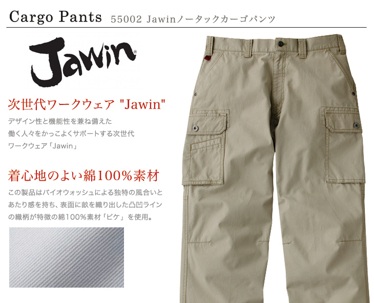 55000シリーズ,カーゴパンツ,自重堂,春夏,ノータック,Jawin,JAWIN,カジュアル,かっこいい,綿100%,ピケ,5L,シルバー,ホワイト,サンドベージュ,建設,建築,鉄鋼,機械,大工