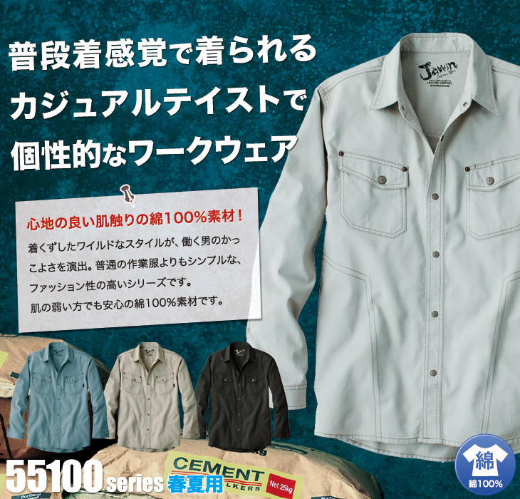 [春夏用]Jawin長袖シャツ[綿100%](01-55104)