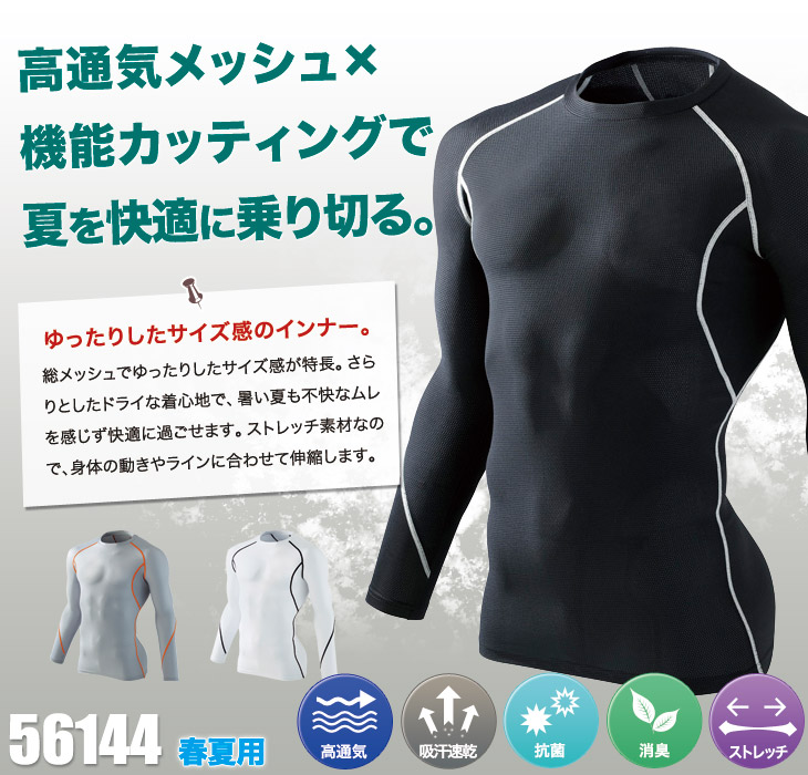 コンプレッション,春夏,自重堂,jawin,インナー,高通気メッシュ,ドライタッチ,ストレッチ,消臭,抗菌,ホワイト,白,ブラック,黒,シルバー,グレー,まとめ買い