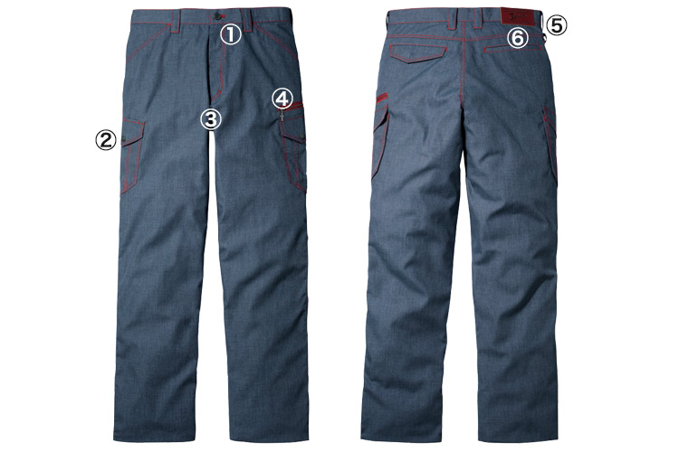 二重織構造で吸汗速乾性を持ち、汗を素早く吸収・乾かすためいつもドライな着心地。 デニム調の素材感とジーニングテイストのデザインがかっこいい、新しい作業服。