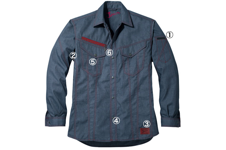 二重織構造で吸汗速乾性を持ち、汗を素早く吸収・乾かすためいつもドライな着心地。 デニム調の素材感とジーニングテイストのデザインがかっこいい、新しい作業服。