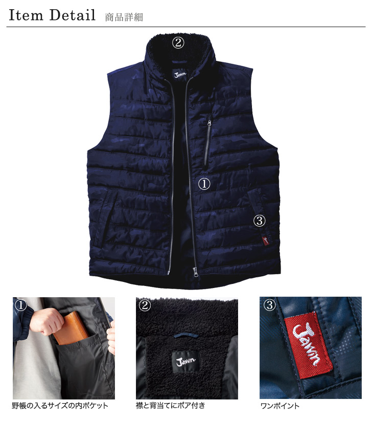 58500シリーズ,Jawin,防寒,ベスト,秋冬用,ネービー,ブラック,ワイン