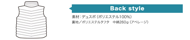 - デュスポ(表地:ポリエステル100%/裏地:ポリエステルタフタ/中綿:200g(アベレージ))