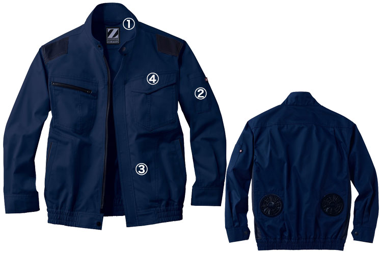 あらゆる現場に対応するシックな配色の空調服®。作業着として人気が高いZ-DRAGONの75500シリーズのデザインをベースにしています。