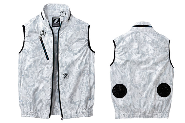 ベストタイプの空調服®は、ファスナーのカラーアクセントが際立ち、スタイリッシュに着ていただけます。