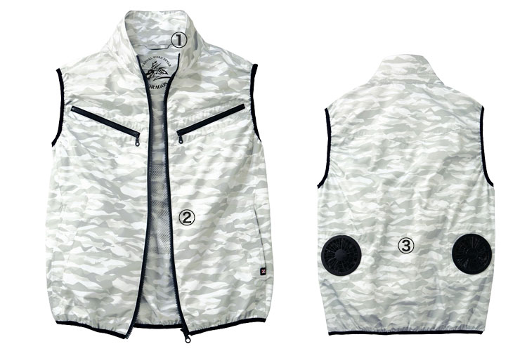空調服®は、ふっくらしたシルエットがあまりかっこよくない…と着用を躊躇してしまう方もいらっしゃいますが、この空調服®ベストは、膨らみを抑えたすっきりシルエットが特徴! カモフラ柄を使った、ワイルドでかっこいいカラーバリエーションでかっこよく着こなせます!