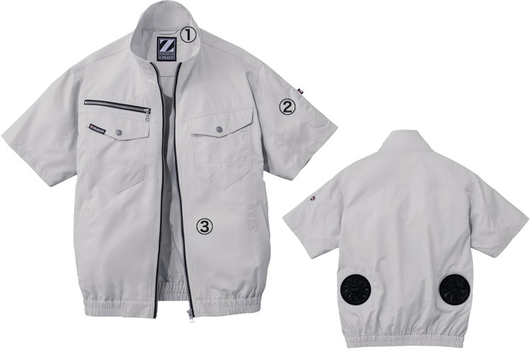 「Z-DRAGON」シリーズの半袖空調服®のセット。ワーキングテイストをカジュアルでシンプルなデザインに進化させました。