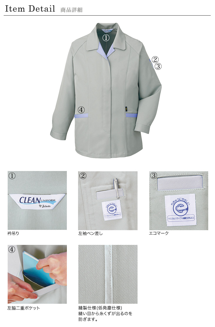 チリやホコリを許さないデリケートな現場でも使えるエコ低発塵製品制電スモック。