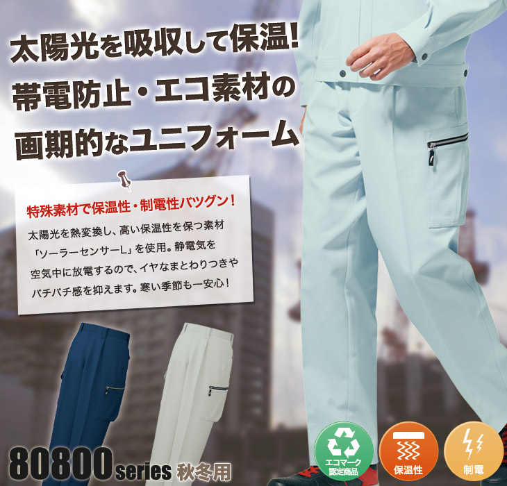 作早2015AW,80800,カーゴパンツ,自重堂,秋冬,ワンタック,帯電防止,エコマーク認定,グリーン購入法対応,保温機能,ソーラーセンサー,ウォームビズ,建設,設備,運送,倉庫,営業,配達