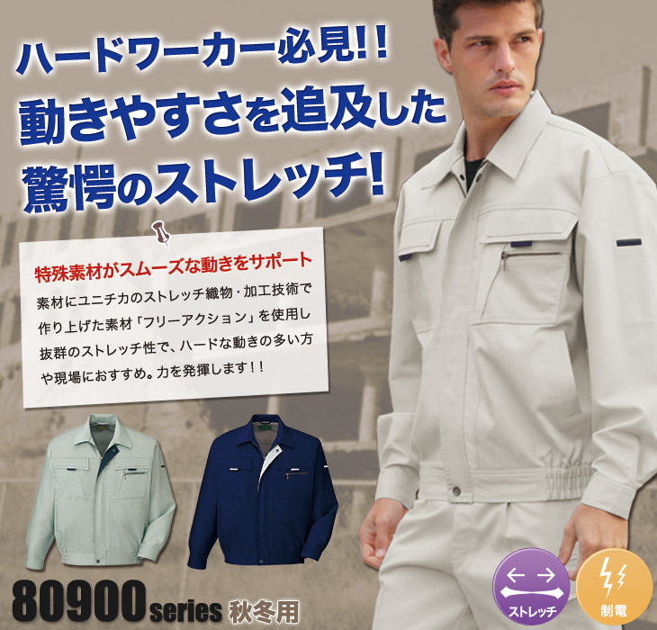 作早2015AW,大工,80900,長袖ブルゾン,アースグリーン,シルバー,ネービー,JI,秋冬,製品制電,ストレッチ,5L,ビルメンテナンス,清掃