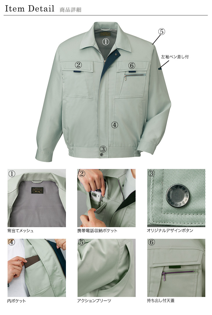 作早2015AW,大工,80900,長袖ブルゾン,アースグリーン,シルバー,ネービー,JI,秋冬,製品制電,ストレッチ,5L,ビルメンテナンス,清掃