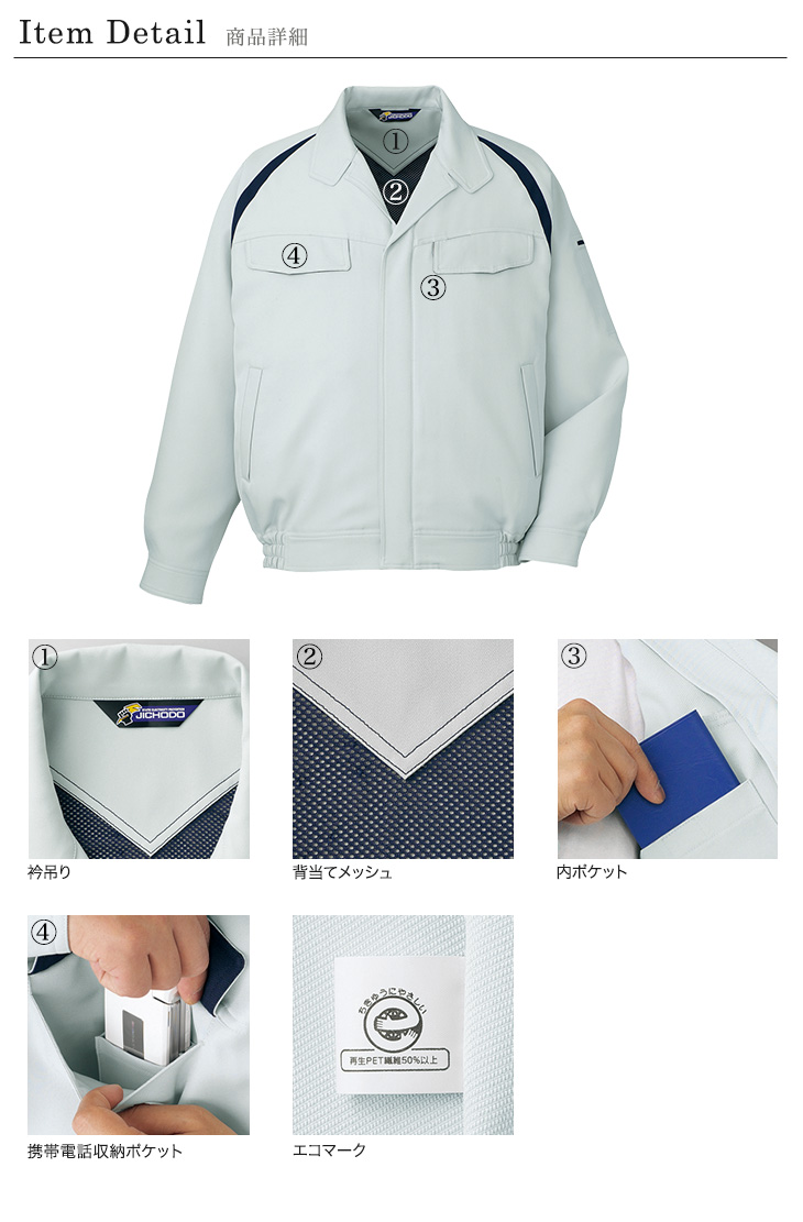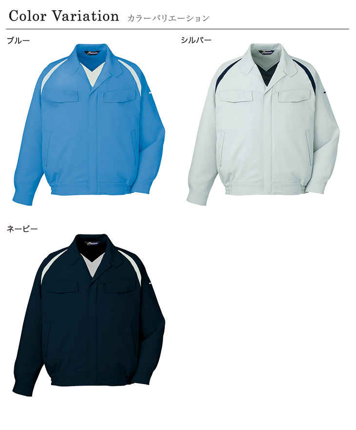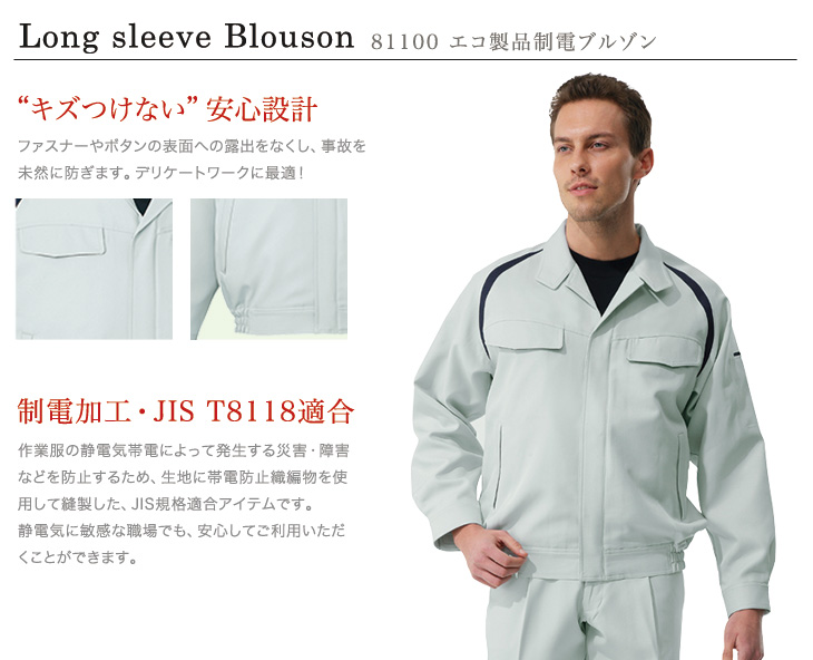 作早2015AW,81100,長袖ブルゾン,自重堂,秋冬,ブルー,シルバー,ネービー,エコ,ペアコーディネート,帯電防止,JIS T8118,グリーン購入法,ポリ高混,精密,運送,倉庫,ビルメンテナンス,清掃,電機,設備