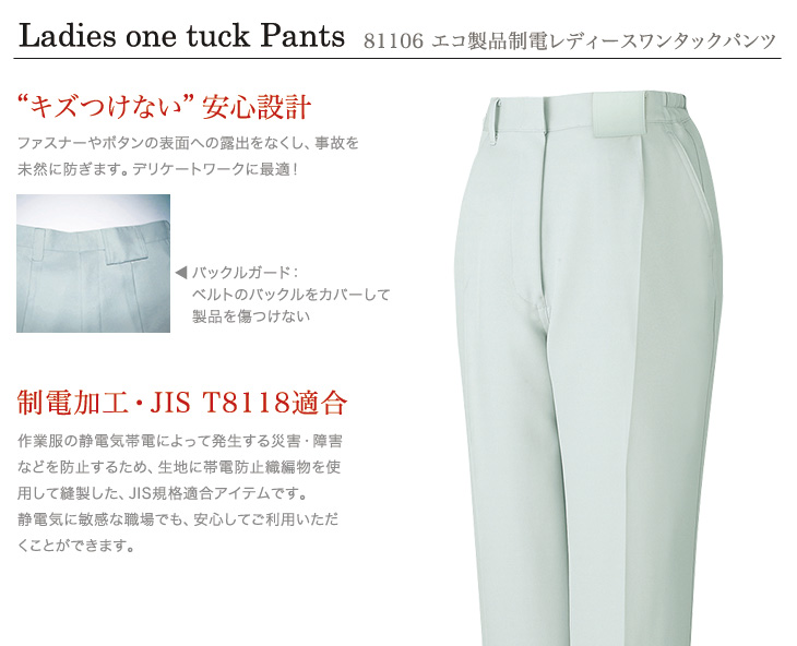 [秋冬用]エコ製品制電レディースワンタックパンツ[JIS T8118適合][女性用](01-81106)