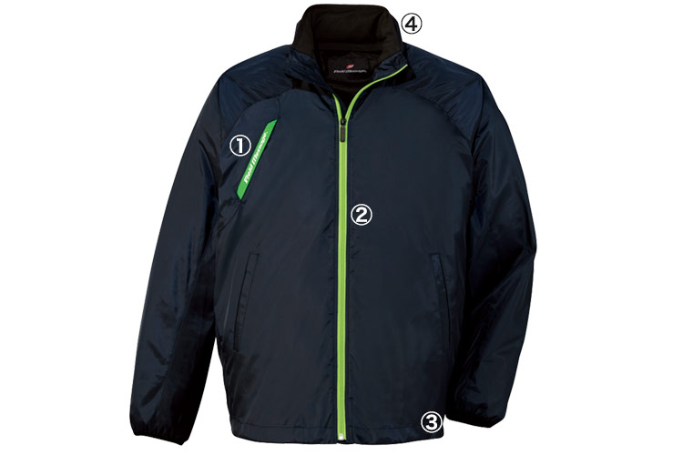 鮮やかな配色がおしゃれな男女兼用で使えるスポーツテイストのブルゾン。 春先や秋口の朝晩冷え込む時などに気軽に羽織れます。 背中には反射パイピング付きで、暗い場所でも安心です。