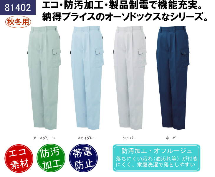 作早2015AW,大工,81400,カーゴパンツ,自重堂,秋冬,ワンタック,帯電防止,JIS T8118防汚加工,エコマーク認定,グリーン購入法,ネービー,シルバー,アースグリーン,スカイグレー,建設,機械,設備,倉庫,