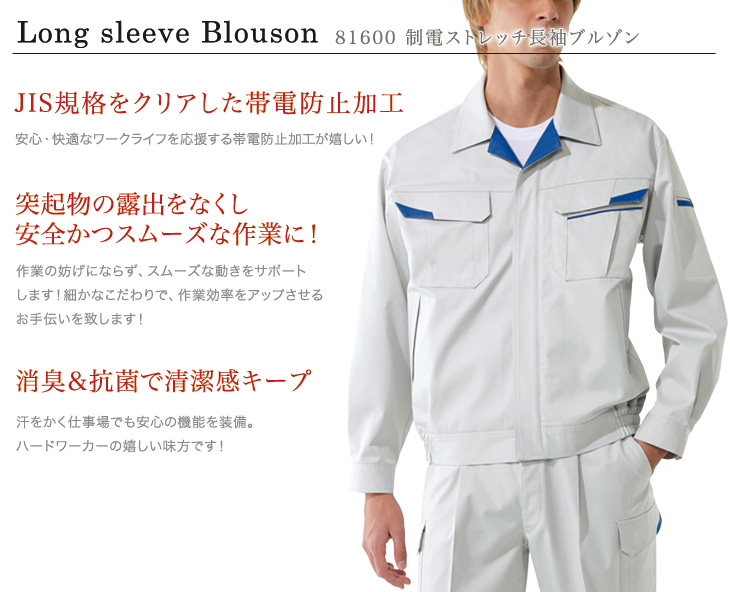 [秋冬用]制電ストレッチ長袖ブルゾン[JIS T8118適合][男女兼用](01-81600)