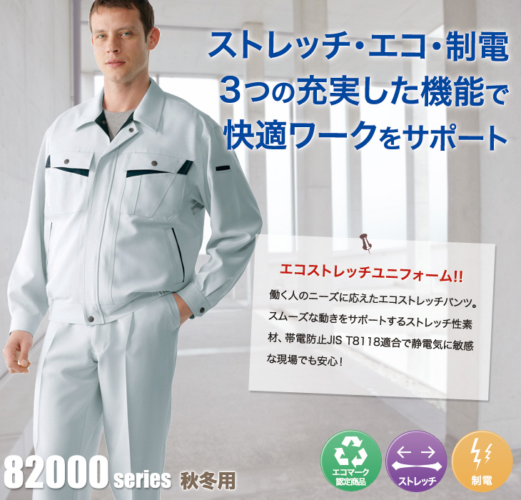 [秋冬用]エコ製品制電ストレッチワンタックパンツ[JIS T8118適合](01-82001)