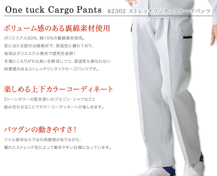 [秋冬用]裏綿ストレッチツイルワンタックカーゴパンツ(01-82302)