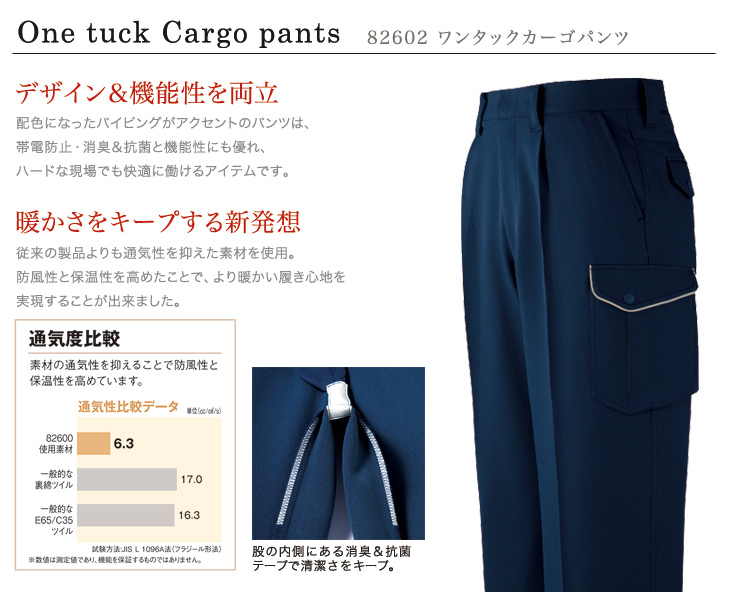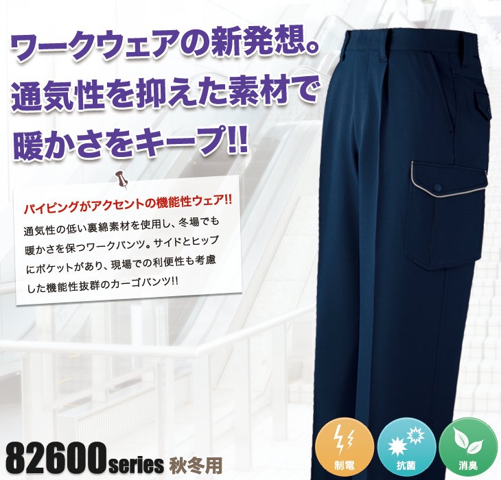 82600シリーズ,パンツ,カーゴパンツ,秋冬用,ネービー,シルバー,アースグリーン,帯電防止,消臭,抗菌