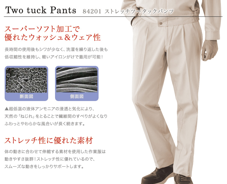 [春夏用]ストレッチツータックパンツ[綿100%](01-84201)