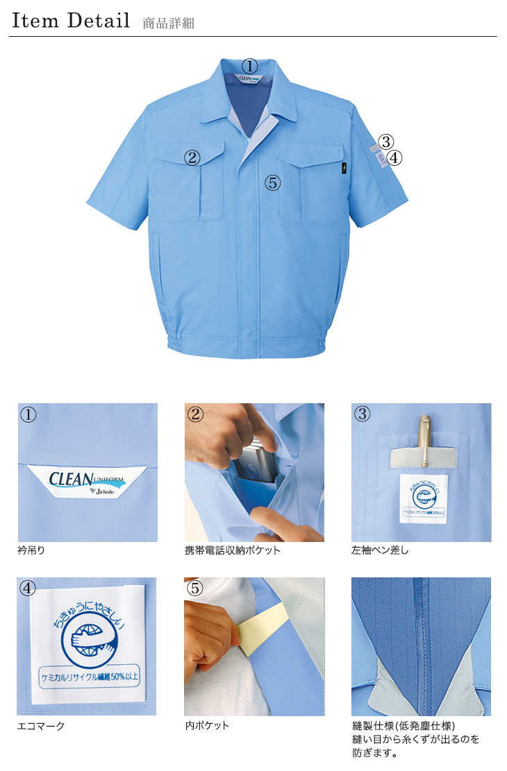 [春夏用]エコ低発塵製品制電半袖ブルゾン[JIS T8118適合](01-84310)
