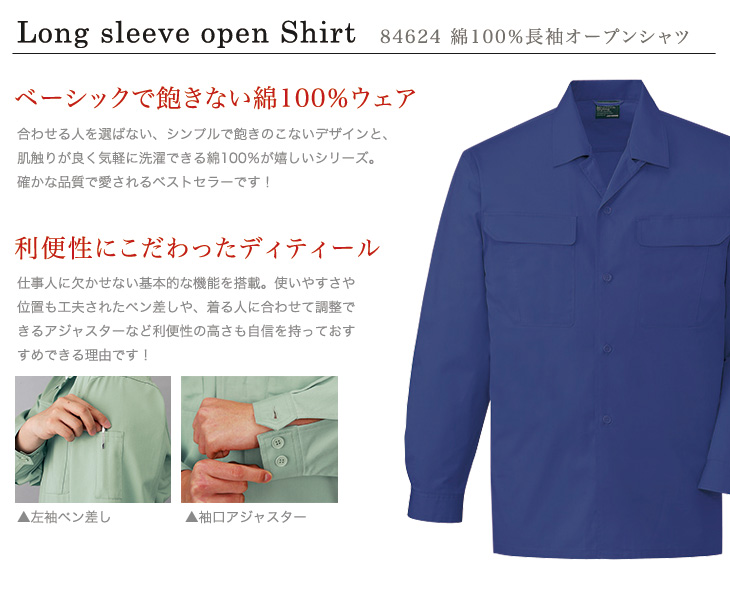 [通年]綿100%長袖オープンシャツ(01-84624)