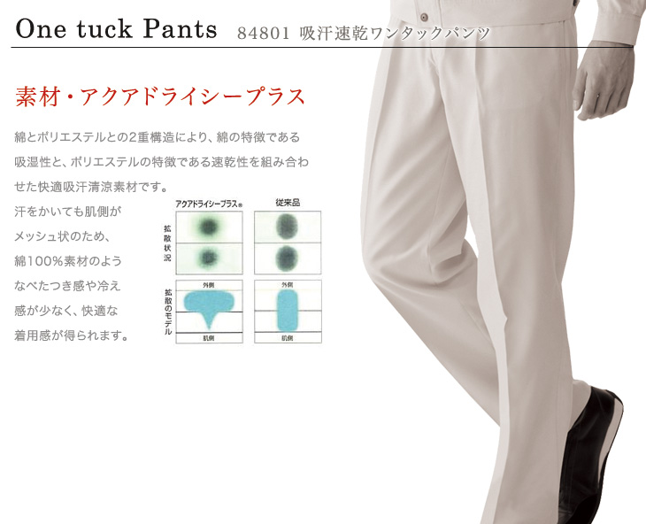 [春夏用]吸汗速乾ワンタックパンツ(01-84801)