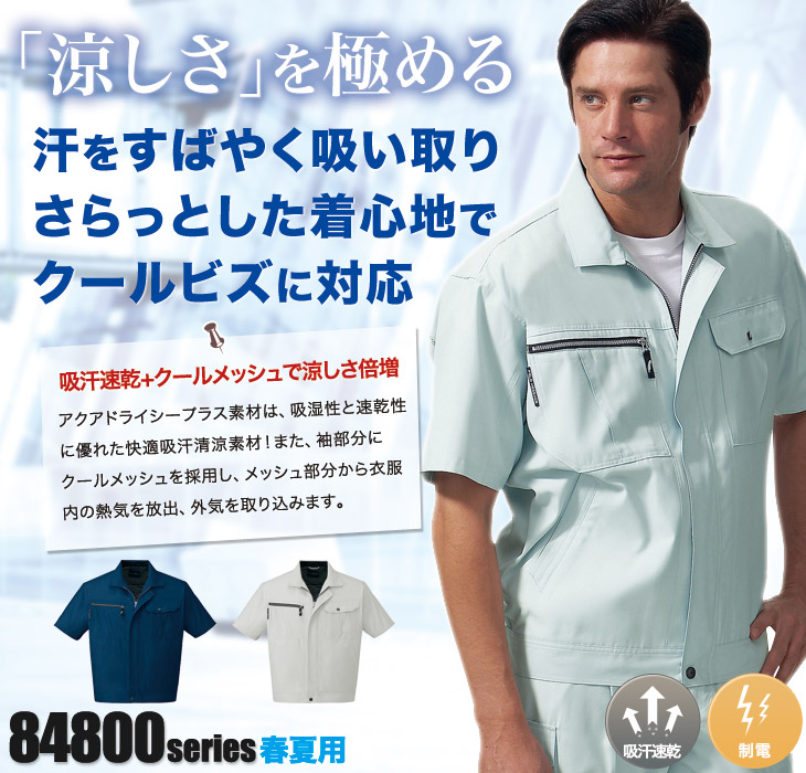 夏物バーゲン,84800,半袖ブルソン,自重堂,春夏,ジャンパー,帯電防止,吸汗速乾,クールビズ対応商品,アクアドライシープラス,ネービー,シルバー,アースグリーン,建設,電機,運送,営業,