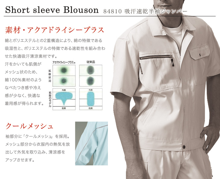 夏物バーゲン,84800,半袖ブルソン,自重堂,春夏,ジャンパー,帯電防止,吸汗速乾,クールビズ対応商品,アクアドライシープラス,ネービー,シルバー,アースグリーン,建設,電機,運送,営業,