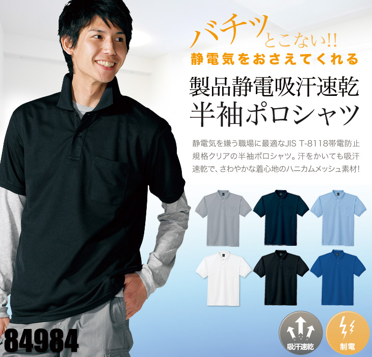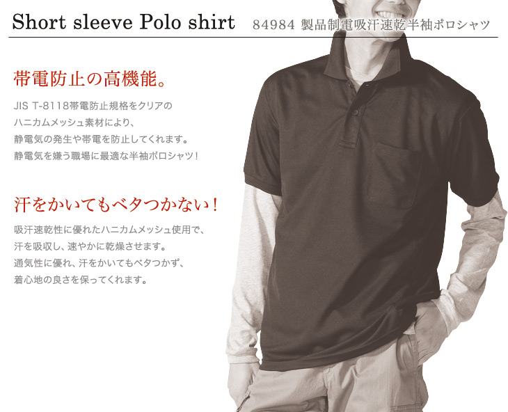 [春夏用]製品制電吸汗速乾半袖ポロシャツ[胸ポケット有り、JIS T8118適合](01-84984)