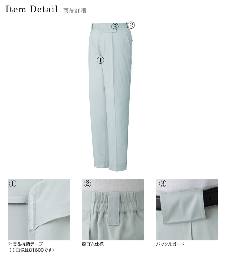 スラックス,85600,パンツ,自重堂,春夏,ワンタック,スラックス,脇ゴム,製品制電,帯電防止,JIS T8118, 消臭,抗菌,ストレッチ,ペアコーディネート,ネービー,シルバー,アースグリーン,ロイヤルブルー,5L,ビルメンテナンス,清掃,電機,設備,運送,倉庫