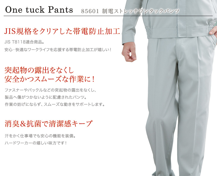 [春夏用]製品制電ストレッチワンタックパンツ[JIS T8118適合](01-85601)