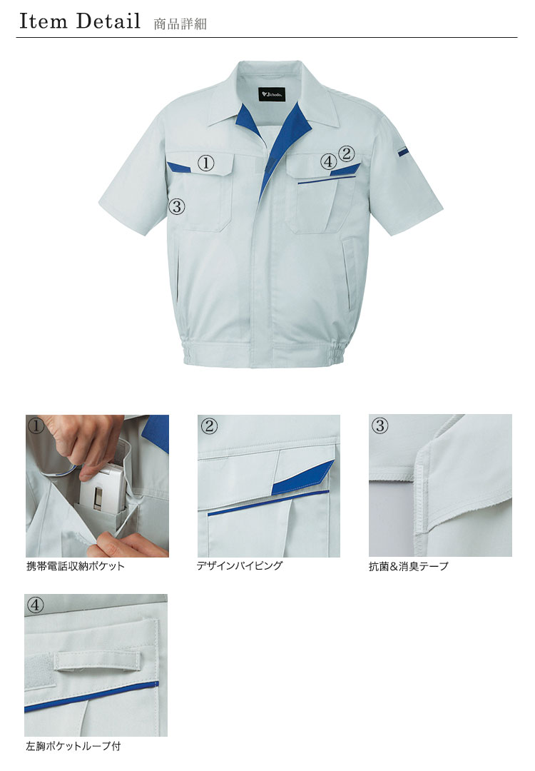 85600,半袖ブルソン,自重堂,春夏,春夏,製品制電,帯電防止,JIS T8118, 消臭,抗菌,ストレッチ,ペアコーディネート,ネービー,シルバー,アースグリーン,ロイヤルブルー,SS,5L,ビルメンテナンス,清掃,電機,設備,運送,倉庫