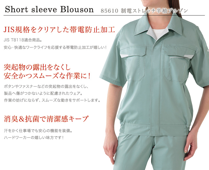[春夏用]製品制電ストレッチ半袖ブルゾン[JIS T8118適合](01-85610)