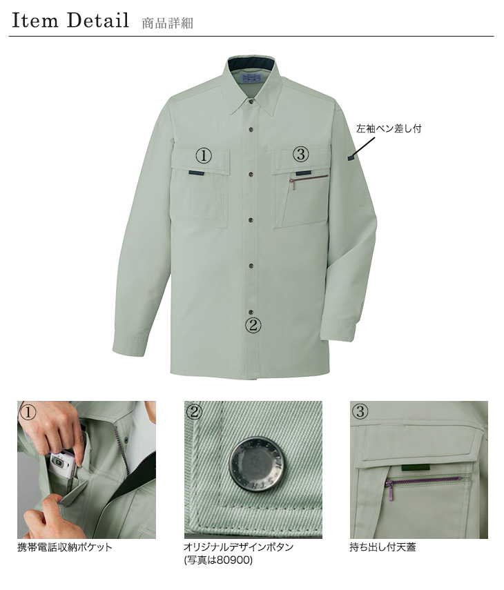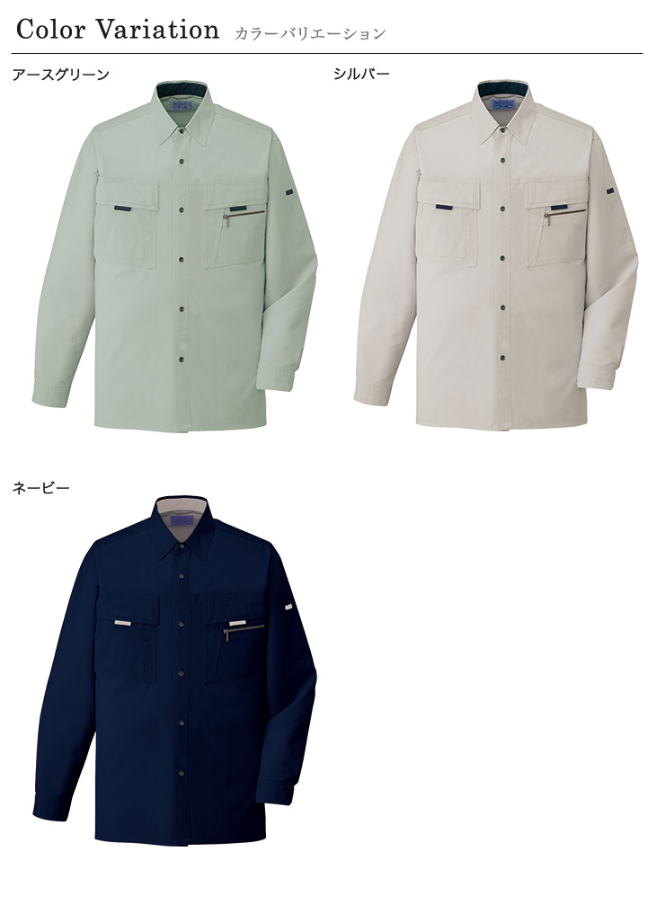 大工,85900,80900,長袖シャツ,アースグリーン,シルバー,ネービー,JI,秋冬,製品制電,ストレッチ,5L,ビルメンテナンス,清掃