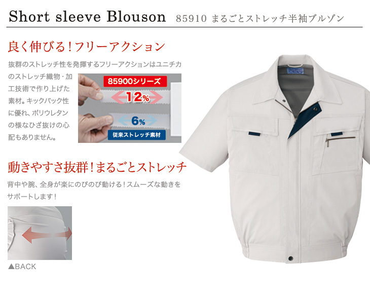 85900,半袖ブルソン,自重堂,春夏,ネービー,シルバー,アースグリーン,ストレッチ,動きやすい,帯電防止,ソロテックス