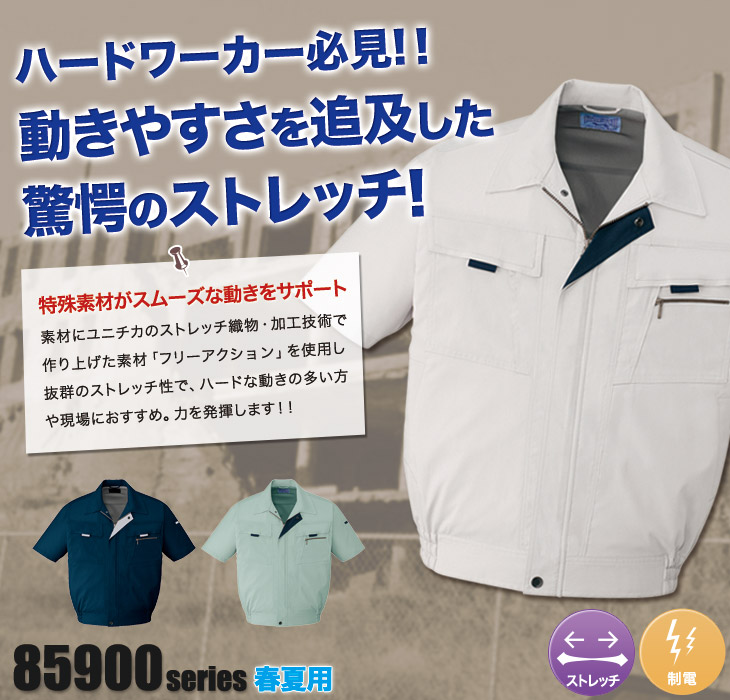 85900,半袖ブルソン,自重堂,春夏,ネービー,シルバー,アースグリーン,ストレッチ,動きやすい,帯電防止,ソロテックス