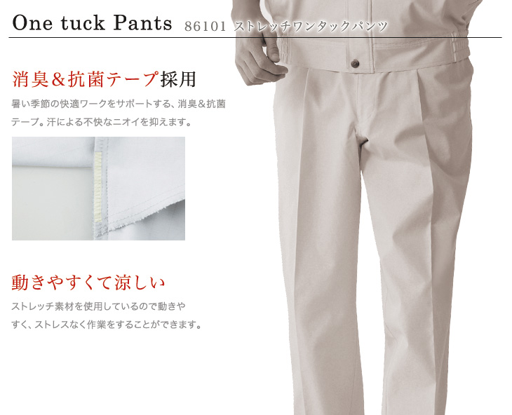 [春夏用]ストレッチワンタックパンツ(01-86101)